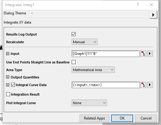Mathematical Area既包括正的积分面积也包括负的积分面积,Absolute Area 不管正负,都取其正的积分面积来计算。不更改其他设置,点击OK。