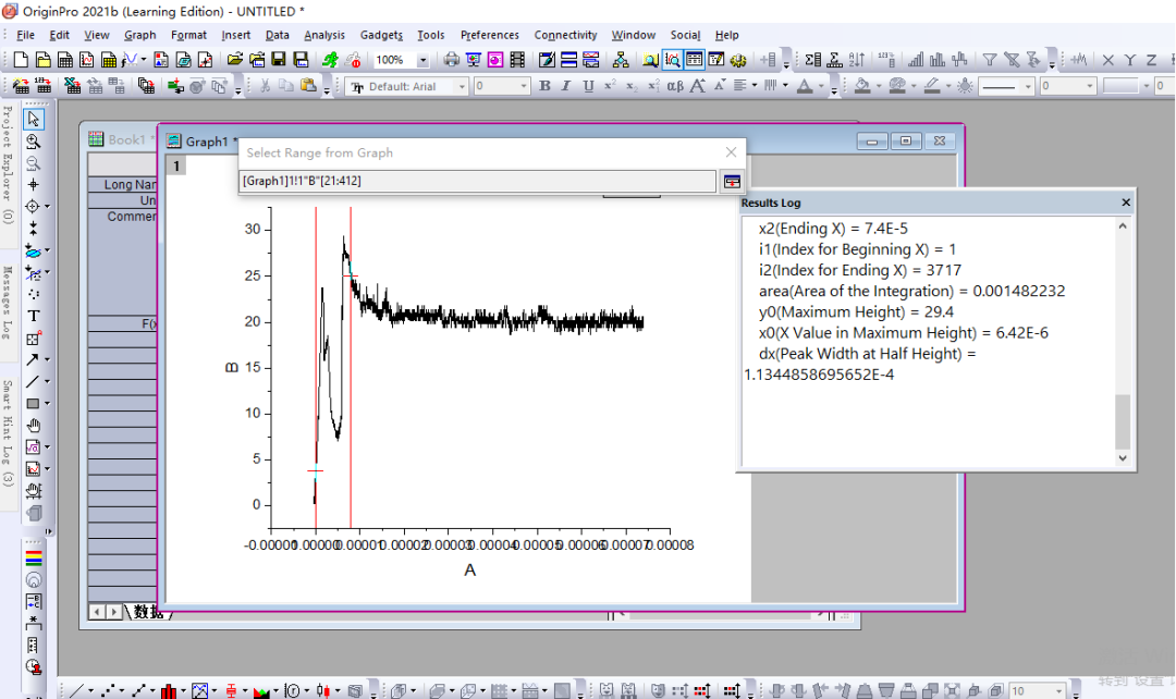 以上是不选择积分区域的计算峰面积方法,那么如果我们需要单独计算某个峰的面积应该如何操作呢?