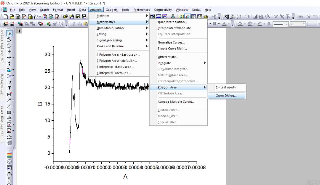 Origin是一款功能十分强大的数据分析处理软件,除了能满足平时的绘图需求,还提供了种类十分丰富的数据处理方式,比如求曲线的峰面积。尤其对于不规则曲线的峰面积,origin能够快速求救。