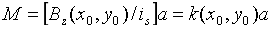 探测线圈在磁偶极子处产生平行于z轴的磁感应强度Bz(x0, y0)。这里我们定义一个重要的特征参数——探测线圈常数k(x0, y0)= Bz(x0, y0)/ is。从线圈链向磁偶极子的磁通还可以写为,则互感系数为: