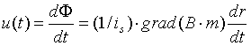 的速度移动,那么探测线圈中产生的即时感应电压则为: