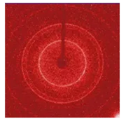答:把晶体挑选出来进行测试,单晶和多晶的衍射图谱不一样。单晶的衍射图谱(左图)是一个个独立的衍射点,而多晶的衍射图谱(右图)是一个个环。