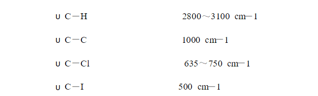 谱带的位置所在,可作为指示一定基团存在的依据。某一基团的特征频率又取决于原子的质量、化学键的力学常数以及原子的几何排布。原子质量越小,伸缩振动的频率越高;反之,伸缩振动频率越低。如: