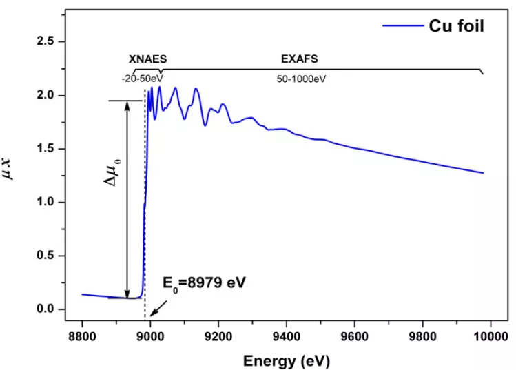 以Cu-Foil为例,即以铜单质标样的XAFS谱为例来说,