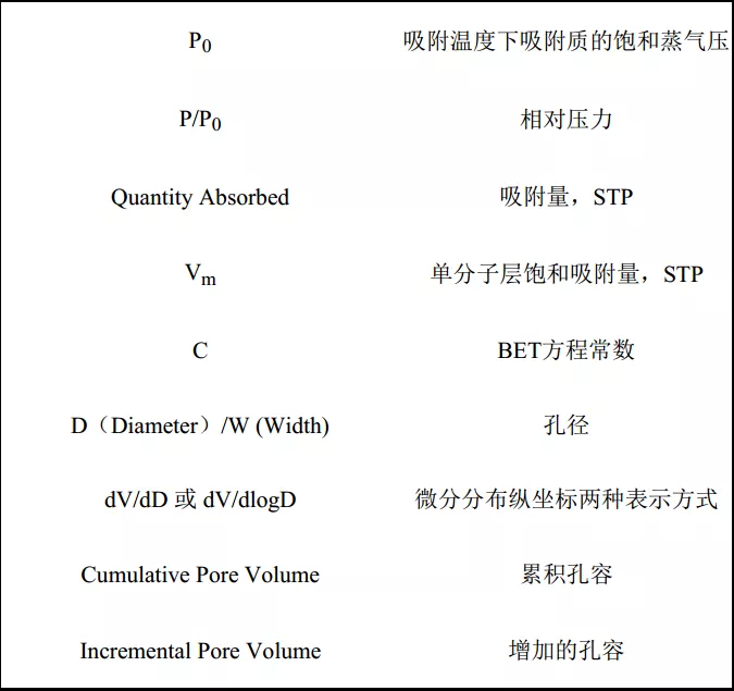 在进行氮气吸脱附表征的时候一般会给出如下数据:氮气吸脱附曲线(Nitrogen adsorption-desorption isotherm),孔容(pore volume),孔径分布图(pore size distribution),平均孔径(average pore diameter)。