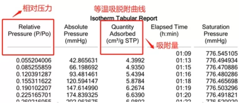 找到对应的isotherm tabular report数据,并将这两列数据导入origin里面作图就可以得到吸脱附曲线。