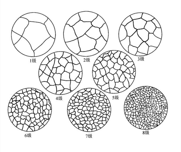 一般情况下测定平均晶粒度有三种基本方法:比较法、面积法、截点法。具体如下