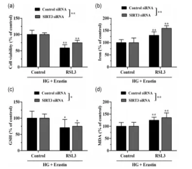 4.当Sirt3沉默时,通过GPX4 的蛋白表达增多来抑制高糖诱发的细胞铁死亡(图2)。