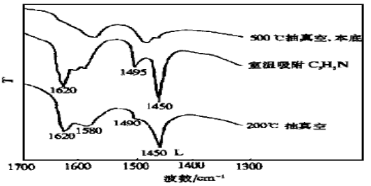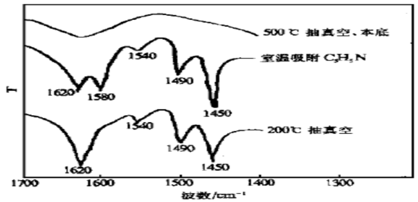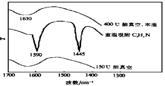 图3. SiO2 -Al2O3的吡啶红外波谱