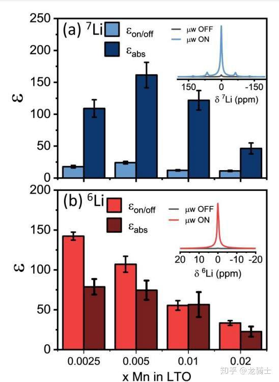 在最优场位置和稳态条件下获得的 (a) 7Li 和 (b)6Li 的 MAS-DNP 信