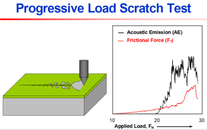 划痕法通过使用不同的传感器(声发射、划痕位移、摩擦力)和视频显微镜观察获得临界载荷数据来量化不同的膜 - 基材组合的结合性能。