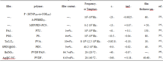 图1具有弱频率(温度)相关性柔性介电薄膜的组成和性能.