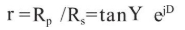式1中,tan Y为光p分量反射系数和s分量复反射系数的比值, D代表光p分量和s分量的相对相位变化,椭偏参量Y和D描述了探测光束的偏振变化,Rp代表偏振光相对于入射面的平行分量的反射系数,Rs代表其垂直分量的反射系数。在得到各层薄膜的折射率、膜层厚度和消光系数等参数后即可计算得到r值。