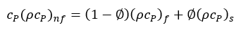 式中,为纳米流体的比热容,为纳米流体的密度, 为纳米流体的体积分数。此外,nf、f和s分别指纳米流体、基液和固体。
