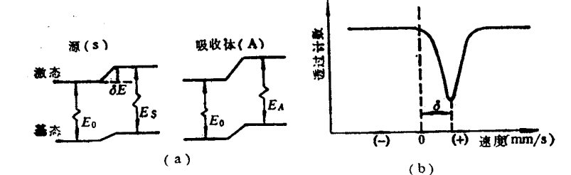 由于同质异能移δ的出现,要观察共振效应,必须通过相应的多普勒速度来补偿这个能移。这样,在谱线上反映出谱线中心位置的移动,因此有时亦称同质异能移为中心位移。见图2。