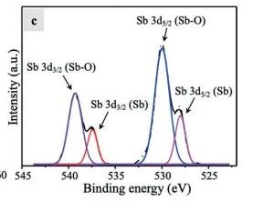 重叠谱峰,O1s的结合能位置在528-535eV之间,Sb 3d5/2正好也在这个范围,所以分析Sb元素的峰的时候就需要考虑O1s的谱峰,但图中全部都归属到Sd,所以面积比例不合理。