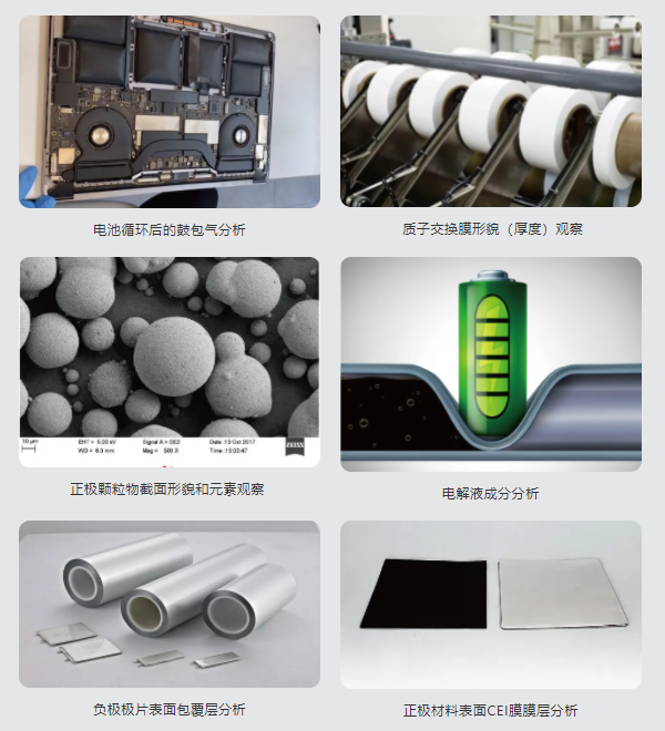 在锂电池产业链的上游及中游,原材料及产品质量控制工作需要借助仪器分析手段对正负极材料、电解液、隔膜等原材料进行检测分析,锂电池的产品性能及安全性能的方面的研发工作也需要对电池的各部分进行理化性能分析。