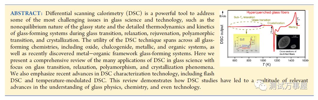 DSC技术的应用涵盖了所有玻璃化转变的化学过程,包括氧化物、硫族化合物、金属和有机体系,以及最近发现的金属有机骨架玻璃形成体系。这篇文章主要介绍了DSC在玻璃科学中的广泛应用,还强调了DSC表征技术的最新进展,包括flash DSC和调温DSC。