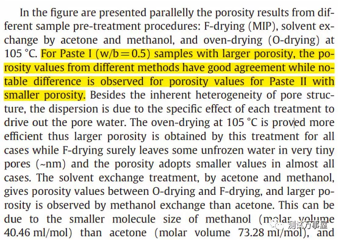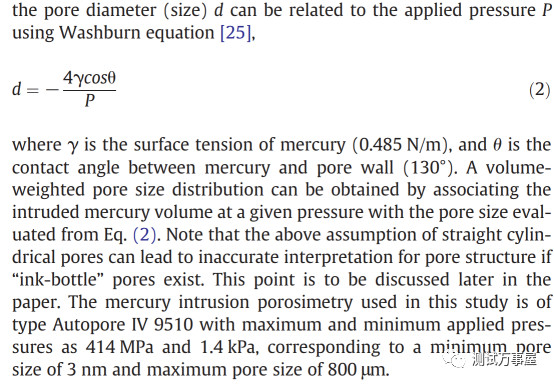 作者使用Auto Pore IV 9500仪器测定,样品尺寸为10×10×10mm。
