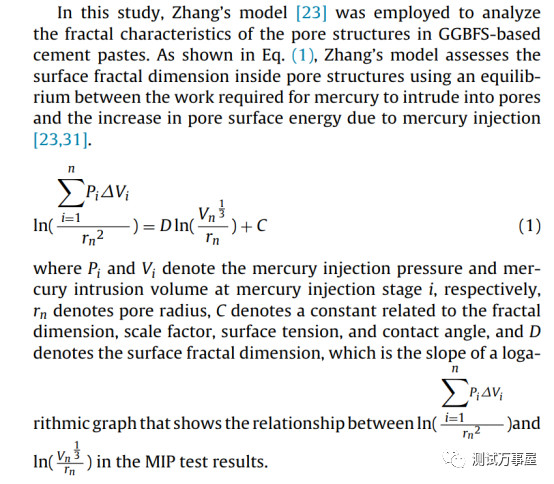 MIP是测定物质孔结构的常用方法之一,其测定范围小至几nm,大致可达几百微米,测定的范围相当大。通过MIP,可以得到孔隙率、孔径分布和孔体积,按照相应的模型,可以计算孔的分形维数,将MIP数据充分利用。