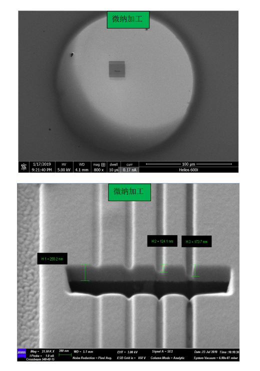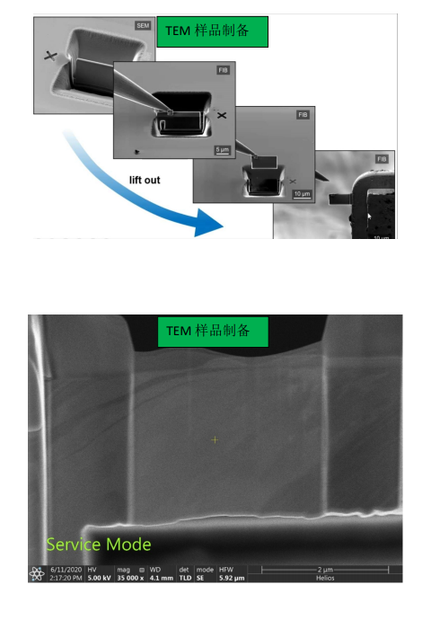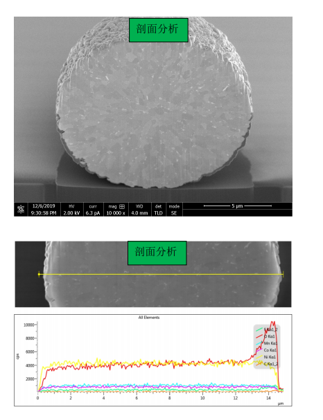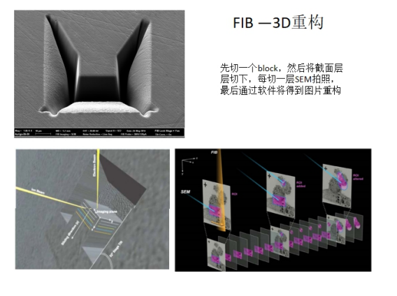 FIB是利用电透镜将离子束聚焦成非常小尺寸的离子束轰击材料表面,实现材料的剥离、沉积、注入、切割和改性。对于金属、岩石、锂电等不同的材料可实现定点剖面形貌和成分表征 、TEM样品制备、微纳结构加工、切片式三维重构、三维原子探针样品制备等功能。
