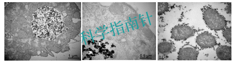 图1 I和II是纳米材料进入细胞切片局部和放大图;III是材料附着细胞表面的细胞切片图