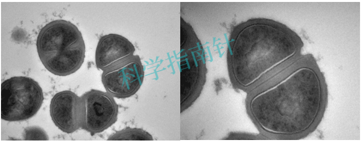 图2 金黄色葡萄球菌在低于药物MIC作用后细胞壁发生溶解