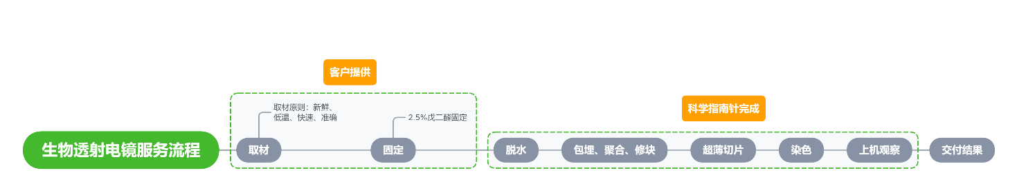 可接收固定好的细胞/组织样品并附有详细送检要求的送样单。