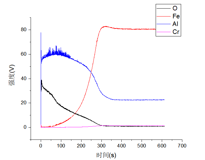 1.测量时显示时间-强度曲线,是客观的,客观体现随溅射时间的增加元素强度的变化;