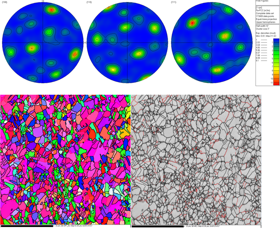 1,微观组织分析:晶粒尺寸、均匀性、孪晶的体积分数、再结晶晶粒以及亚晶、晶界特性分析、相鉴定、相分布等;