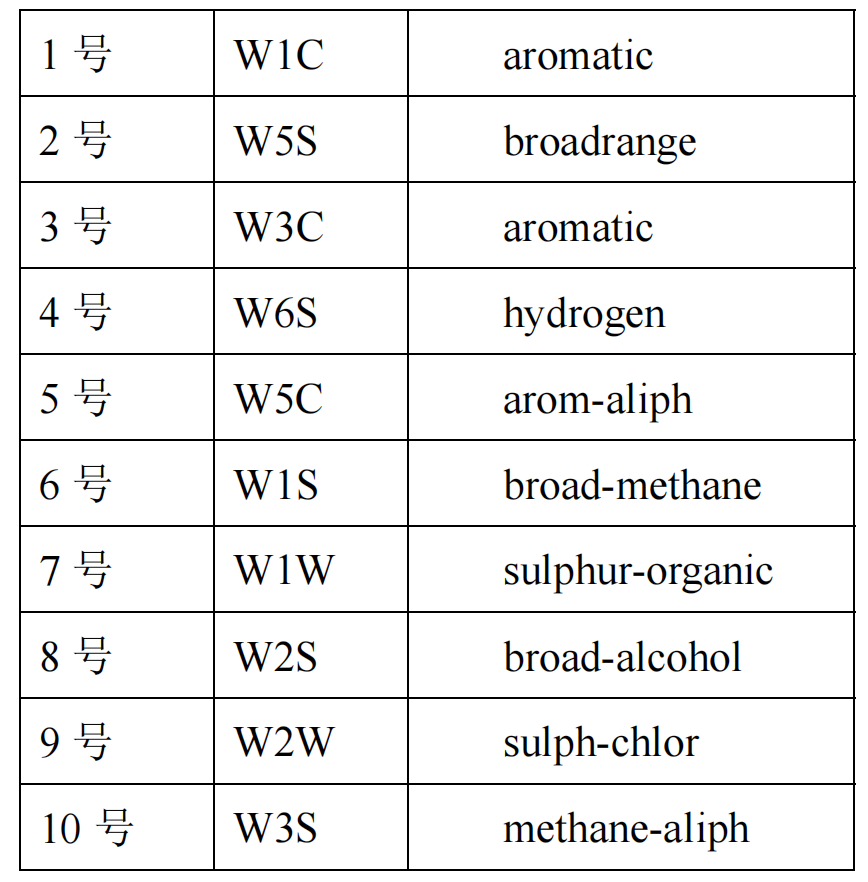 电子鼻是模仿人的嗅觉系统,利用气体传感器阵列的响应图案来识别气味的电子系统。德国AIRSENSE公司产的PEN系列的电子鼻在只有1.8ml的体积里放置了10种不同的金属氧化物传感器。热传感器的检测下限为1PPM。选择性由传感器的组成物质、参杂物质、工作温度和外观形状等来决定。所用的传感器对S基化合物、甲烷、氢、乙醇和烃类物质有很好的选择性。