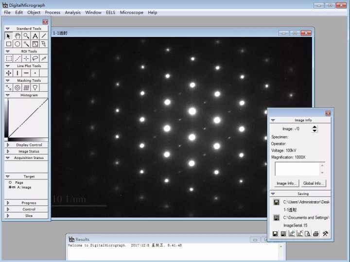 接下来我们简单演示下用DM软件标定多晶与单晶的SAED图片方法。以下是软件的工作界面。