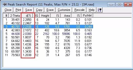 假设该种材料已知,打开jade,调出其标准卡片(本例随意选取了一个),将测量的距离和标准卡片数值d进行比对。假设我们测出的d值分别对应于该材料的(211)、(220)晶面间距,则确定衍射斑点对应的面为(211)和(220)晶面。