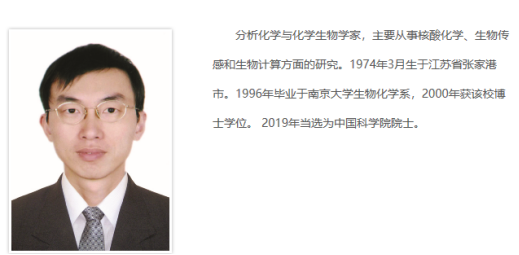 现任上海交通大学转化医学研究院(国家转化医学科学中心)执行院长,上海市核酸化学与纳米医学重点实验室主任。2007年获得国家杰出青年基金资助,2012-2016年任科技部纳米973首席科学家。入选美国科学促进会(AAAS)、国际电化学学会(ISE)、美国医学和生物工程院(AIMBE)和英国皇家化学会(RSC)会士,兼任ACS Applied Materials & Interfaces副主编,ChemPlusChem编委会共同主席。已在Nature等杂志发表论文500余篇,引用>4万次,H因子>100,近七年连续入选“全球高被引科学家”。曾获国家自然科学二等奖,何梁何利基金科学与技术创新奖、美国化学会“测量科学进展讲座奖”、谈家桢生命科学创新奖、药明康德生命化学杰出成就奖等。其团队致力于核酸化学生物学研究。在生物传感与成像和DNA分子自组装等方面开展了长期而系统的研究工作,探索以框架核酸为特色的重大疾病诊疗、DNA存储与计算和分子机器等前沿应用。