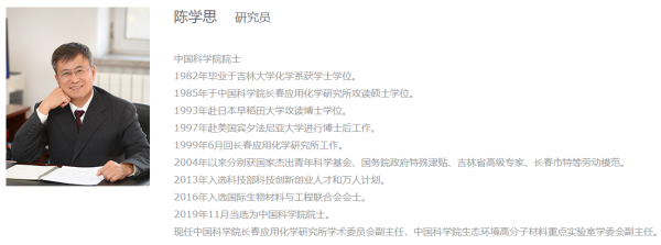 中科院长春应用化学研究所学术委员会常务副主任,中科院生态环境高分子材料重点实验室学术委员会副主任,生物高分子研究组组长。长期从事高分子化学研究,设计与合成高旋光纯度的聚乳酸和聚氨基酸两大类聚合物,具体从事生物降解医用高分子材料与器件、组织工程支架和药物缓释载体、聚乳酸和聚e-己内酯绿色材料产业化等方向的研究与开发工作。开展了PEG-g-聚谷氨酸/顺铂抗肿瘤纳米药物的制备及其应用研究。同浙江海正集团合作实现了1.5万吨聚乳酸产业化,技术水平达到了国际领先。组建了长春圣博玛生物材料有限公司,获得了可吸收骨折内固定钉和板CFDA两个注册证(III类),3个产品已提交注册申请或在临床评价(III类)。发表SCI学术论文700余篇,SCI他引2万余次,h-指数为83。授权专利260余项。任学术期刊《Advanced Healthcare Materials》,《Advanced Therapeutics》,《Journal of Controlled Release》等编委或顾问编委。