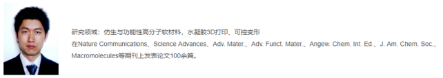 吴子良,浙江大学高分子科学与工程学系研究员。2003年毕业于浙江大学化工系,2006年于华东理工大学获工学硕士学位,2010年北海道大学获理学博士学位。之后分别在多伦多大学、居里研究所、北海道大学从事博士后研究工作。2013年加入浙江大学高分子系。主要从事仿生与功能性高分子水凝胶、弹性体方面的研究,已在Nature Communications、Science Advances、J. Am. Chem. Soc.、Angew. Chem. Int. Ed.、Adv. Mater.、Adv. Funct. Mater.、Macromolecules等期刊发表论文100余篇。